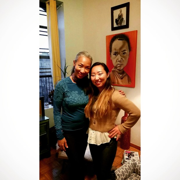 I had a wonderful time this weekend meeting the amazingly beautiful and very talented Stefanie B, and her dog, Billy Lee, at their lovely apartment in NYC. It was a rainy dreary March day in New York. But as soon as I met Stefanie, I felt an instant ray of sunshine and a real warmth that lasted well into the night. She is literally one of the most beautiful people I have ever laid eyes on. So much so that it is hard to believe that she was ever terrorized for the way that she looked growing up as a biracial Korean child in Korea and then as a biracial Korean adoptee growing up in the states. She has the most amazing dark hair highlighted with shades of grey, which Stefanie proudly owns as her own “fifty shades of grey.” She believes in embracing the beauty that you are at whatever age you are. And that aging can be done gracefully. She has a warm glow with golden skin that looks like we are in the dead of summer. And her smile could stop any man in his tracks. But even more than that, this lady has class, artistic flair, and a beautiful warm soul.